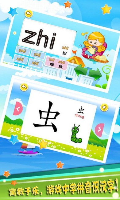 3、这是孩子们学习拼音的启蒙老师,得力助手。在学习拼音的过程中穿插了许多儿歌故事和游戏让孩子不知不觉在游戏中学会拼音,赶紧下载使用吧!