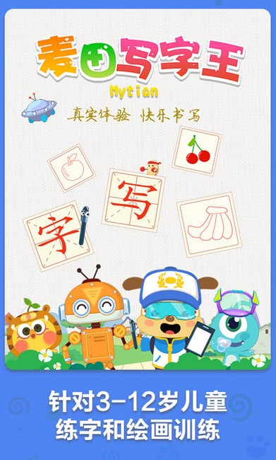 麦田写字王app是针对3-12岁儿童在练字和绘画训练过程个性化反馈的产品,