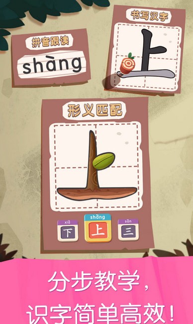 初学每个汉字都要经过认、读、写、听的综合训练,用动画和趣味互动的形式让孩子无须刻意记忆,便能“观其形,听其音,晓其义”。
