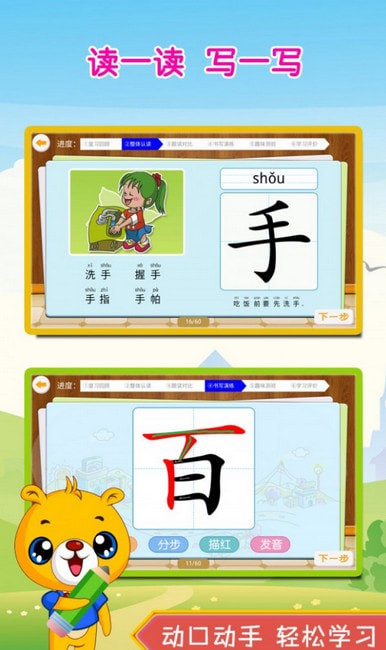 儿童互动识字描红(汉字描红)软件。学前300字,权威资源,、绿色、安全、无广告,持续更新,无限下载,并支持离线使用。
