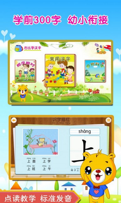 巴比学汉字识字app是一款早教app,巴比学汉字识字app专注于孩子的汉字学习,通过游戏和知识相结合的方式,让宝贝可以更好的接受所学知识。