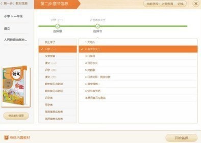 2、一般要设置的内容由学段,年级,学科,版本,单元章节等,设置完成后选择一键备课