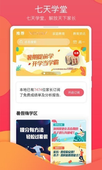 七天学堂查询成绩入口是一款家庭教育助手,七天学堂app软件拥有家长头条,学情,选课走班等等诸多功能,七天学堂app安卓版可以帮助家长更好的家庭教育,更好的培养孩子,需要的朋友欢迎前来下载使用。