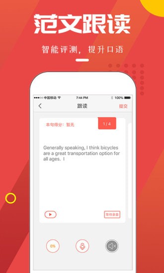 精选雅思口语高频真题,长按即可开启口语练习,录音跟读,秒出分数,达到精听精练的效果。