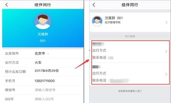 4、在信息采集功能中都填写完之后,在结伴同行(非必填)功能中可以发布自己的出发城市、预计出发的时间及联系方式,方便同一城市的同学互相联系,同行到校。