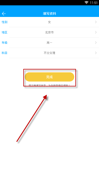 完善个人信息,点击“完成”