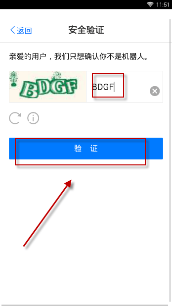 输入验证码信息,点击“验证”
