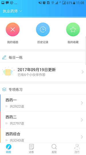 3、进来之后首页刷题-错题、历史记录、收藏、每日一练等