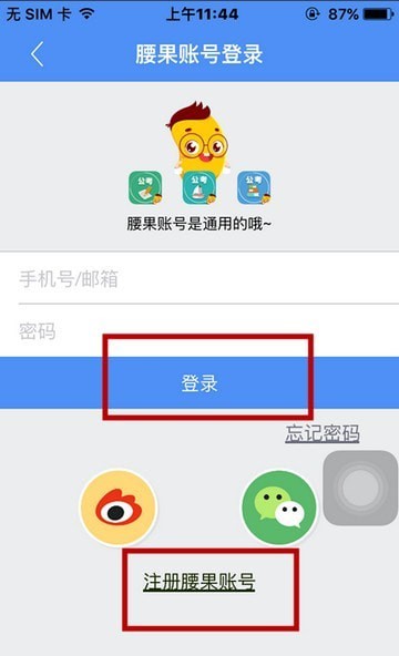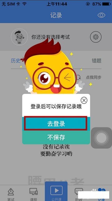 打开软件,点开右下角“记录”,会蹦出一只小腰果,点“去登录”注册或者登陆账号(腰果账号是可以在他们家三个软件和上通用的)
