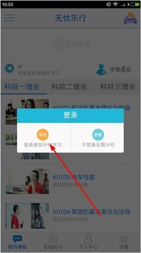 您在屏幕上任意点击一个位置,变会出现如下框框,如果您想长期使用的话,点击“登录参加计时学习”,就可以进入登录界面了;