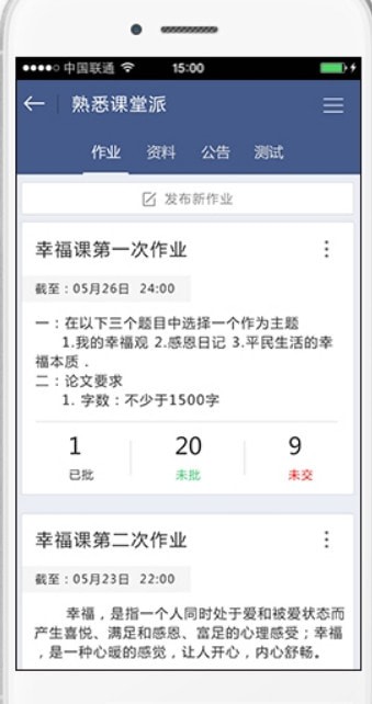 管理课程:作业、资料、公告、测试,快速发布、轻松批阅、高效管理