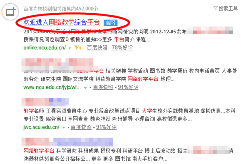 在搜索引擎里输入要登陆的网络教学平台名称,然后点击百度一下搜索,如图小编以某高校的网络教学平台为例,来示范。