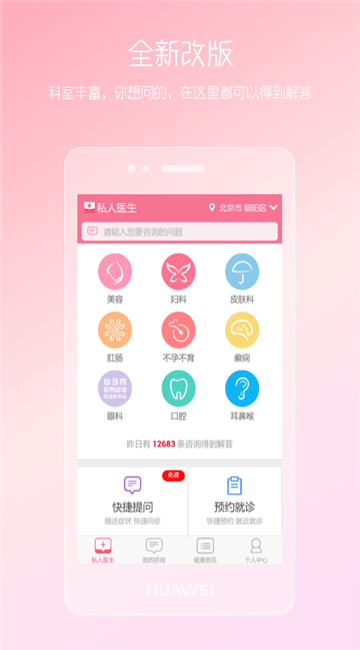本产品专门针对女性私密健康问题,美容整形,不孕不育等其他专科类健康问题,提供免费的医疗健康咨询和生活健康指导。妇科,女性痛经等私密尴尬病症总是难以启齿;挂号难,排队久,长时间等候换来不到5句话的答复,此类问题给患者来带诸多不便。本产品集合了多个科室,不同类别的病症选择不同科室分类咨询;简单快捷的提问过程,让您随时随地享受VIP健康咨询服务。