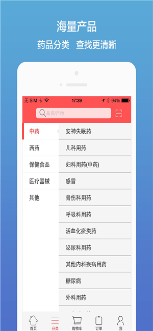 3、清晰的产品分类:精准搜索到药品;