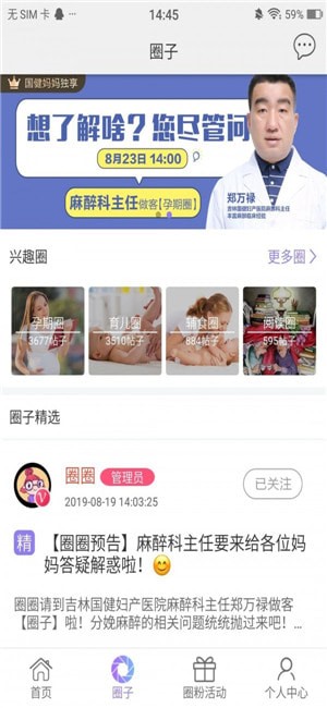 3、点击圈子,可以关注自己喜欢的圈子进行交流