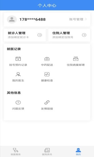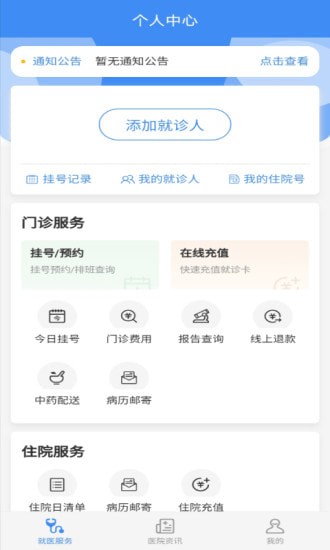 服务评价、就诊指南、特色医技、个人中心等功能。