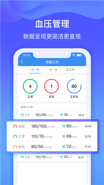 在此可以时时刻刻的管理血压的数值,能够查看历史的血压数据;