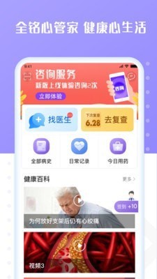 全铭心管家app是的一款专注于医疗健康服务的手机应用软件,为用户提供了很多的医疗服务,拥有雄厚的医疗医生资源,用户可以直接在手机上进行在线咨询,在线问诊,可以让用户及时的进行就诊,有需要的朋友快来下载吧!