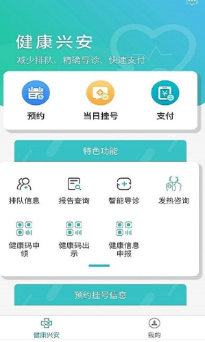 可以实现内蒙古兴安盟地区就近医院的用户注册、用户医疗卡信息管理、查看排队信息、预约挂号、在线支付、检验检查报告查看、医疗相关新闻资讯查看以及智能导诊等便捷就医的功能。