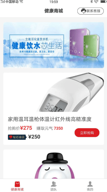 用户登录APP后,可以在健康商城中浏览商品,