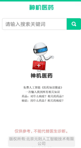 智能化的医药知识搜索引擎。采用AI算法,计算药品与药品、疾病;疾病与药品、相关疾病之间的关系,相关疾病,建立“知识神经元网络”。不同于百度、Google等传统的基于关键词索引的搜索引擎,搜索引擎是由用户输入关键词驱动的“被动搜索”,“神机医药”具有智能化的“主动搜索”能力,用户仅一次性输入关键词,即可搜索到所有医药相关知识。