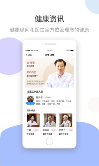 1.专业健康咨询:隐私保护,健康顾问和医生共同全方位管理用户的健康.