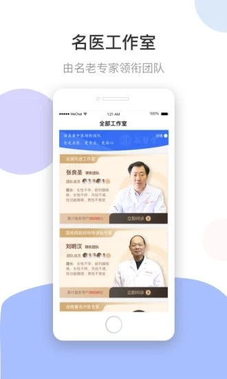 在线问诊开方:名医领衔,与团队成员为用户进行问诊诊断和复诊开方。