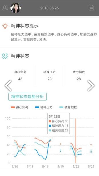 -用户通过一键测试可检查自身的脏腑状态和心率等身体参数