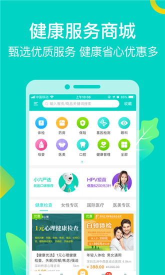 *健康商城:保健品、医疗器械、HPV疫苗、母婴用品、体检卡应有尽有,网购健康更方便。