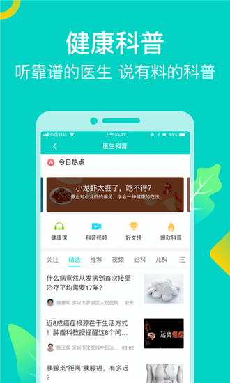 *医生咨询:40多万医生7*24小时在线,支持图文/电话/视频咨询,10分钟内有问必答,让患者与专家实现远程诊疗;