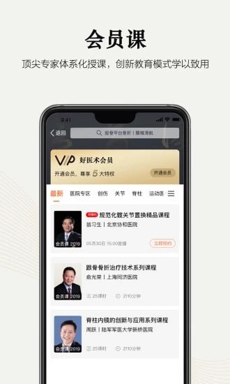 1、精英培训,课程学习:好医术邀请国内外知名骨科专家授课,这里汇集了全球骨科大师的手术经验分享,每一个课题都是专家们的历年经验所得,教您一套最实用的手术操刀技巧,让您不出国门,尽享天下医学精华。