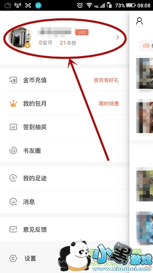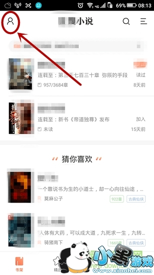 打开宜搜小说进入后,就可以来到阅读界面。如下图选择,点击左上小人。