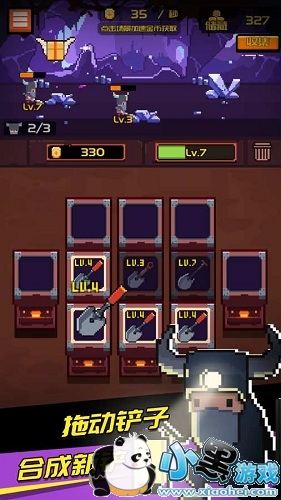 玩法非常简单,通过合成的方式,解锁不同的铲子,同时招募矿工,探索未知的地形,挖掘更多的黄金!
