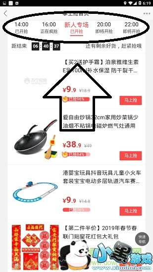 第二、在抢购活动界面按照时段寻找自己喜欢的商品参与抢购即可。