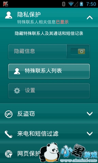 卡巴斯基手机安全软件帮助您管理手机中允许他人查看和访问的内容。