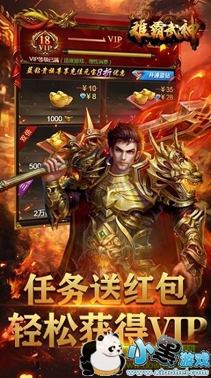 《雄霸武神》是一款热血传奇题材的ARPG 手游,传奇经典版本,千人同屏,万人同战。游戏画面精美,世界观恢宏庞大,人物造型华丽,技能特效炫酷!打boss爆神装、本服跨服巅峰赛季、跨服抢夺BOSS、多模式PK等多种特色玩法,全面颠覆你对游戏的认知,激发你的战斗欲!