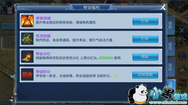 帮会中还为帮众提供了各种福利,如领取分红。
