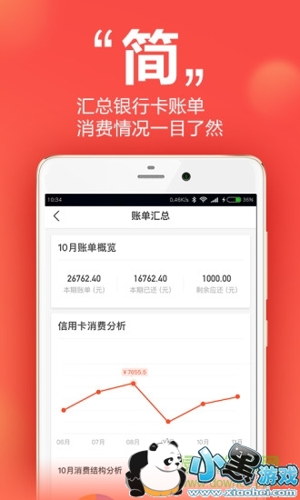 轻松:账单随时查询,轻松浏览,交易明细了然于心,卡再多也不怕不怕啦!
