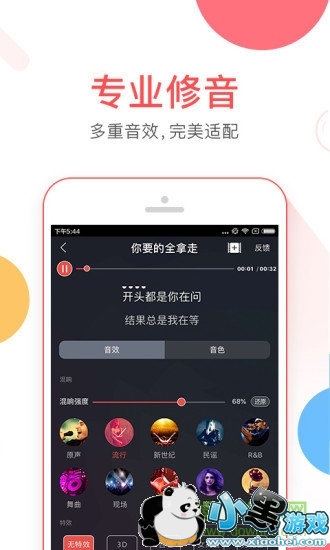 4.音质最佳:实时升降调、均衡器、混响器强大调音功能,实时完成歌声美化支持流行、民谣、摇滚、R&B等多种音效,让你的演唱瞬间高大上。