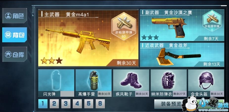 背包用于设置角色装备,玩家可以通过购买多个数量的背包,进行多种类的装备方案设置,背包及其装备内容可用于战斗场景内进行切换使用。