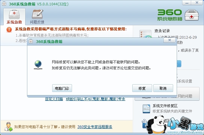 4,如何使用360系统急救箱的系统文件修复区功能?