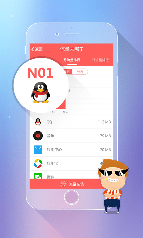 流量监控宝安卓版是一款免费的流量监控软件应用,功能十分的强大,你可以实时的检测到你的流量使用情况,流量使用一目了然,在也不用担心用超流量了,快来下载吧!