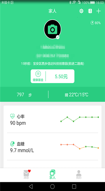 点击家人,随即可以查看家人的身体数据