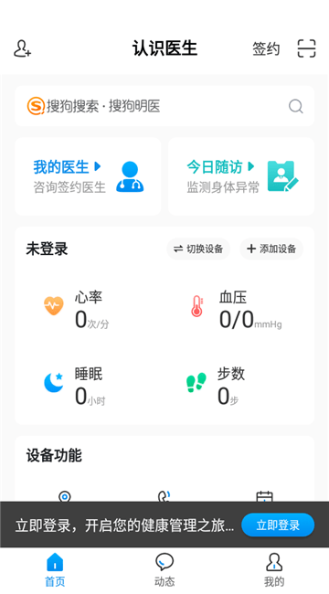 认识医生是一款用通过连接智能设备就可以准确获取健康数据的医疗平台,用户可以在线测量自己的血压、心率等多项健康数据指数,让你清晰的了解自己的健康情况,还能在线咨询医生多种健康问题和预约挂号。