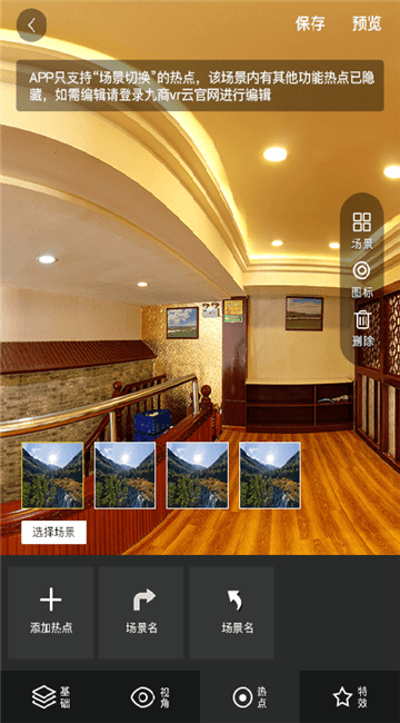 九商VR云是一款利用移动互联网技术制作vr全景的全新摄像软件,帮助用户对不同的场景用全新的vr图展现出来,还能为图片添加多种图片效果,操作简单方便,是摄影师提供优秀作品的专业渠道。