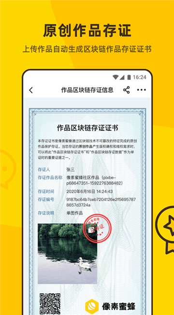 ◎像素蜜蜂存证书:为原创作品确权,存证你的版权