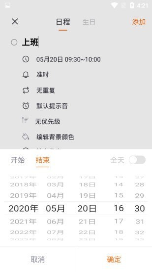 掌控时间app可任意一键建立日历,快速方便,要事随时记录。