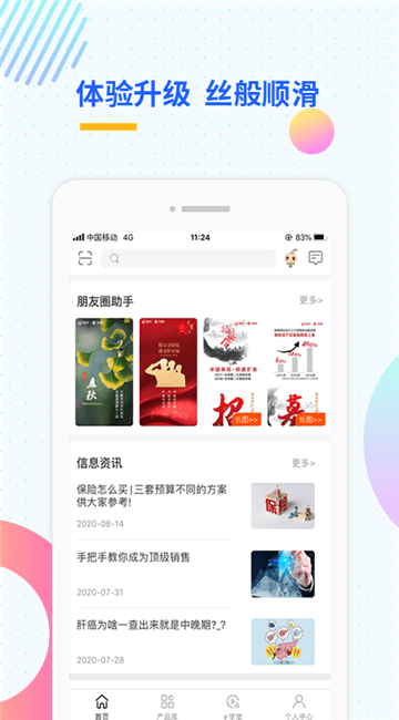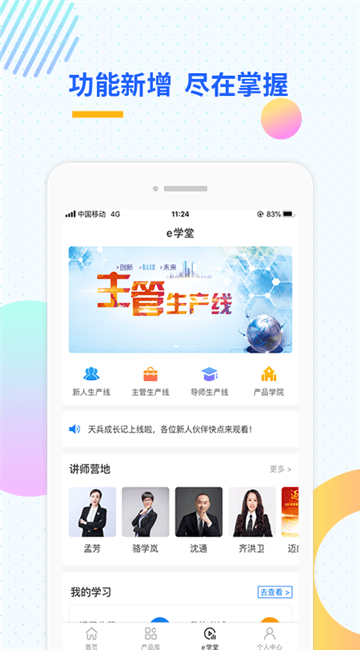 3、进入首页,点击e学堂、保单体验等模块进行操作