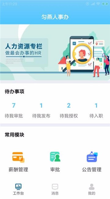 提供了审批管理、学历管理、薪资查询、通知公告等众多功能。