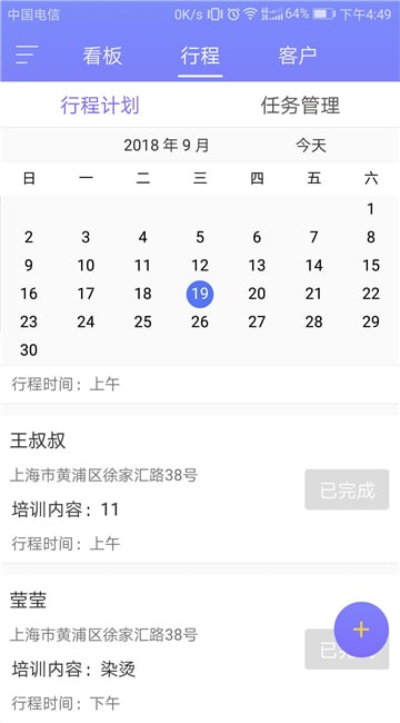 3.点击行程可以查看各种个人计划和团队计划等